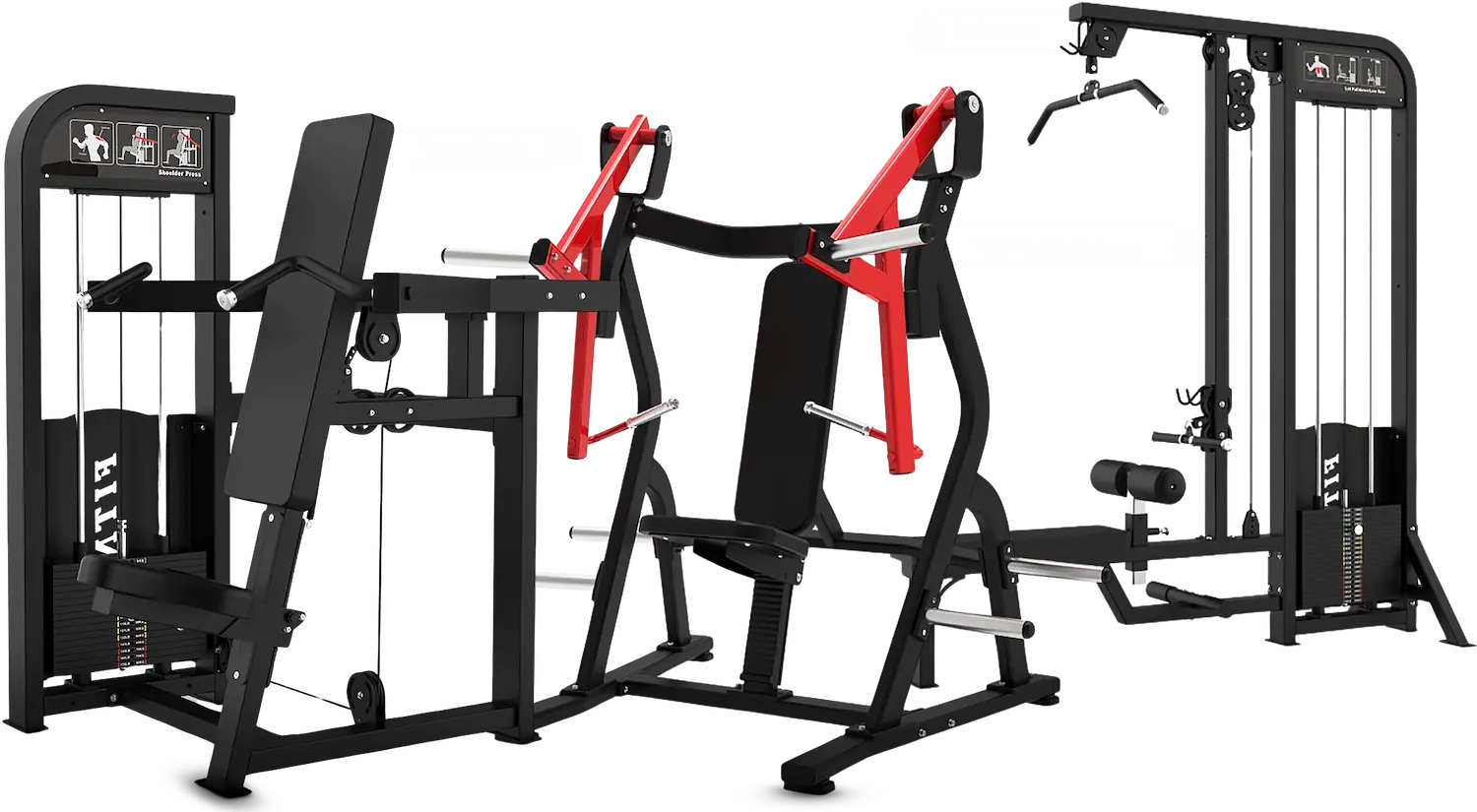 Esses equipamentos oferecem movimentos guiados que favorecem a execução correta, ideal para iniciantes, reabilitação e ganho de massa muscular com controle preciso da sobrecarga.